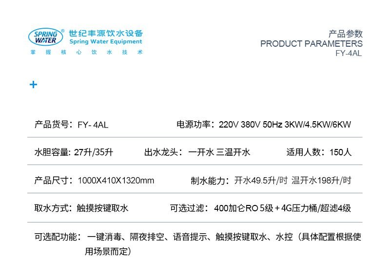 相關(guān)標簽:反滲透水處理 150人用開水溫開水節(jié)能飲水機觸摸型、型、號:FY-4AL
