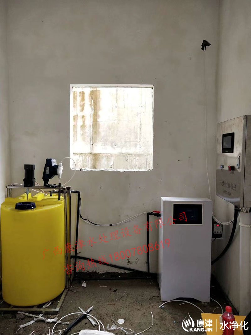 工藝流程:河水-絮凝加藥-石英砂過濾器-二氧化氯加藥器-凈水箱-各用水點