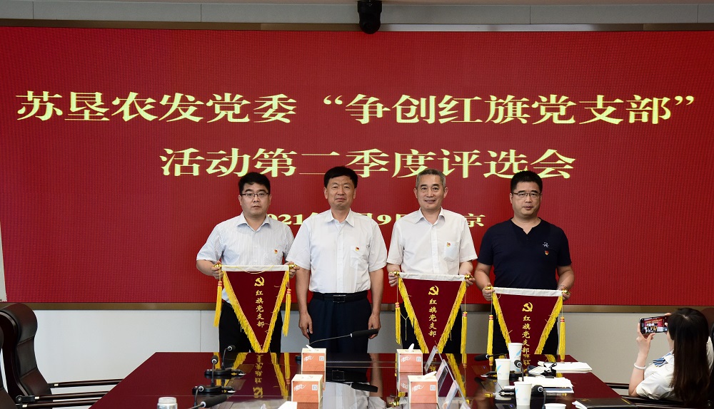 在現場投票環節,經過2輪激烈的票決,最終總部第一黨支部、蘇墾米業總部黨支部和蘇墾農服總部黨支部票數略勝一籌,被評為二季度“紅旗黨支部”。倪志愿為三個黨支部授旗。