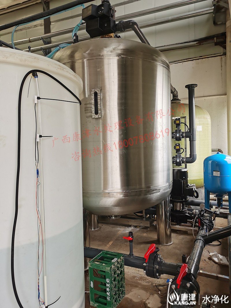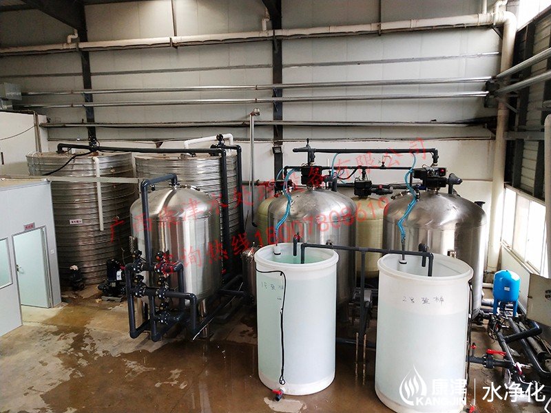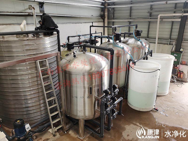 工藝流程:井水-原水箱-錳砂過濾器-石英砂過濾器-活性炭過濾器-軟化水-凈水箱