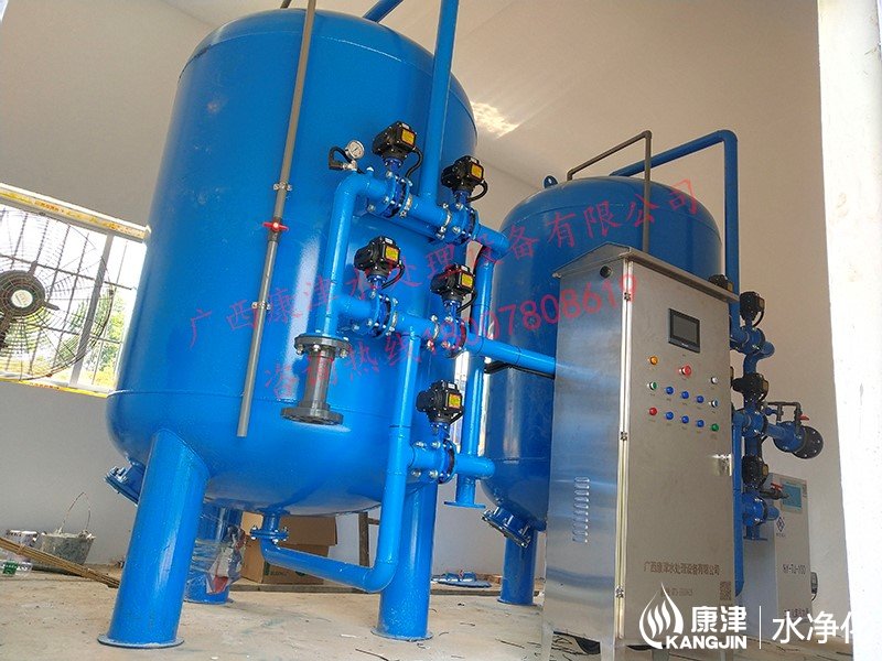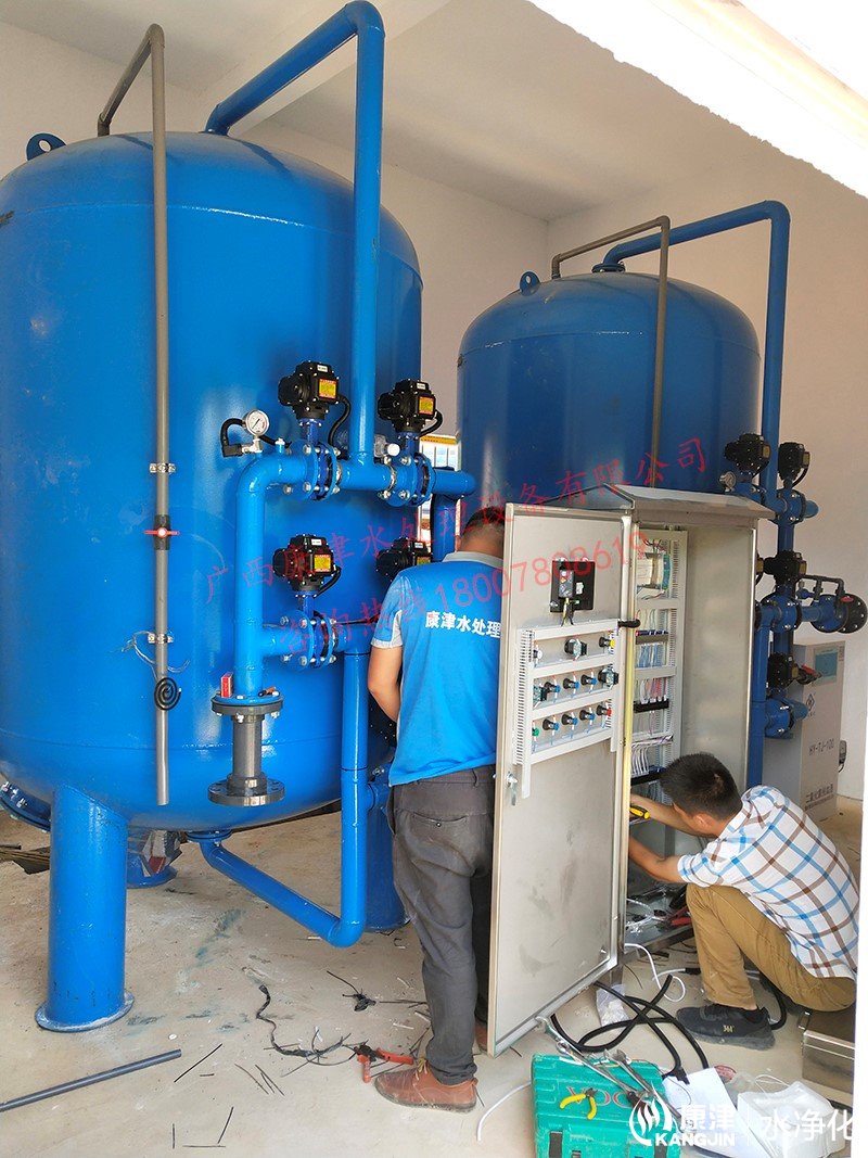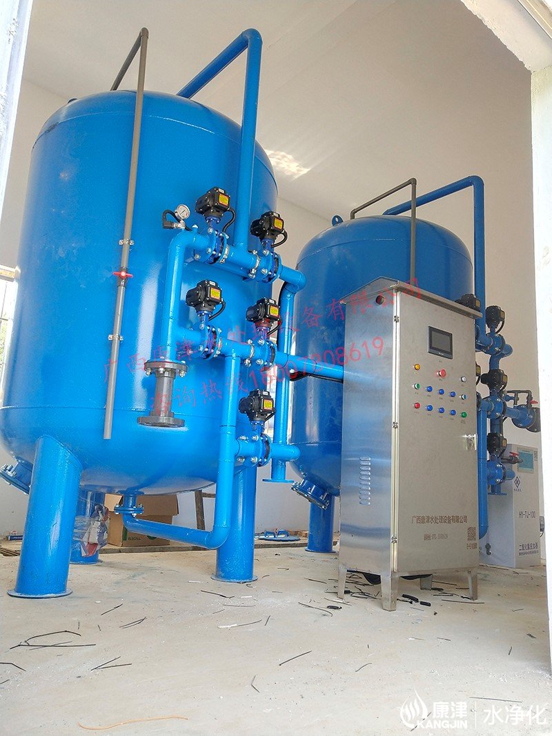 項目名稱:貴港公王村河水凈化工程 設備名稱:30噸壓力式凈水設備 工藝流程:河水-石英砂過濾器(二級過濾)-二氧化氯消毒...