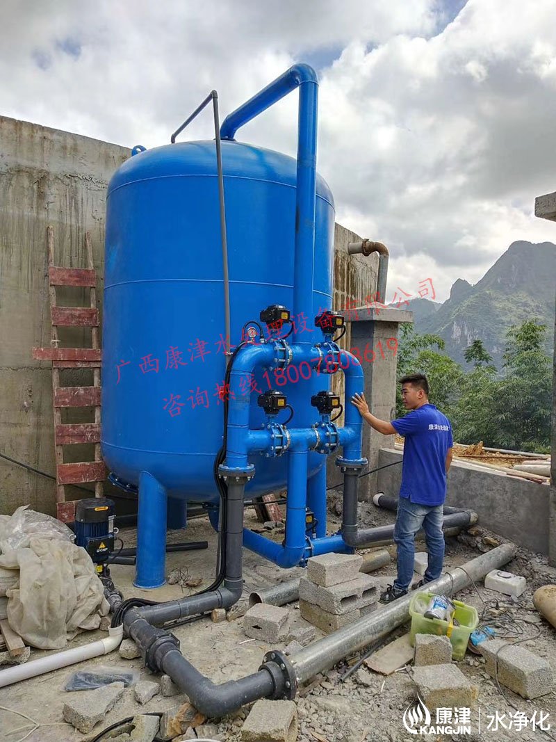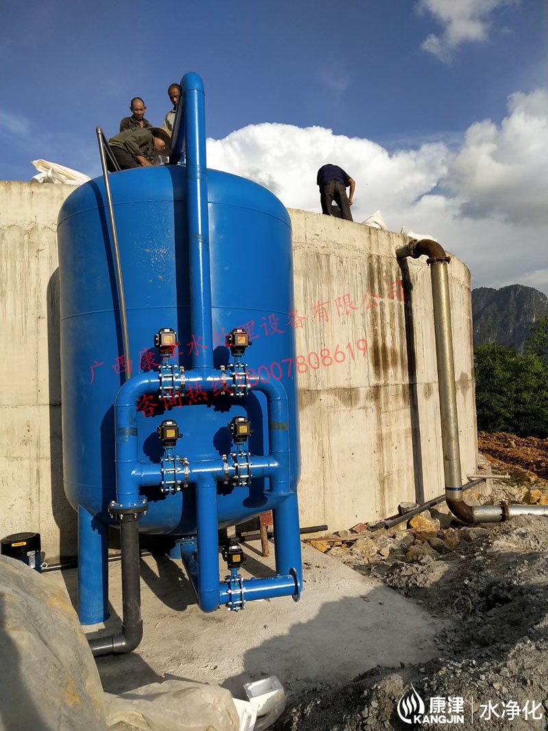 項目名稱:百色市凌云縣伶站瑤族鄉(xiāng)40噸壓力式一體化凈水設備 設備名稱:40噸壓力式一體化凈水設備 工藝流程:河水-絮凝加藥-石英砂過濾器-二氧化氯加藥器-凈水箱-各用水點...