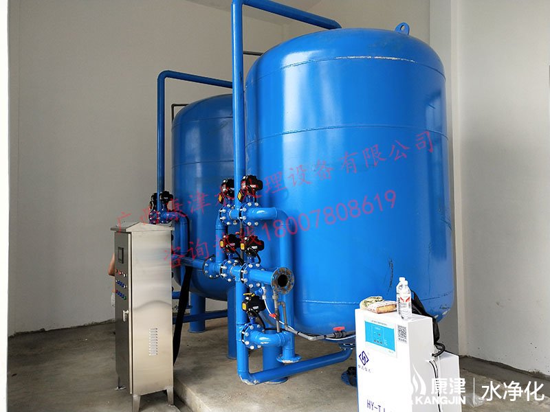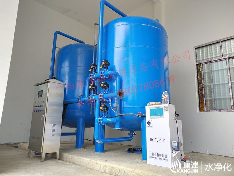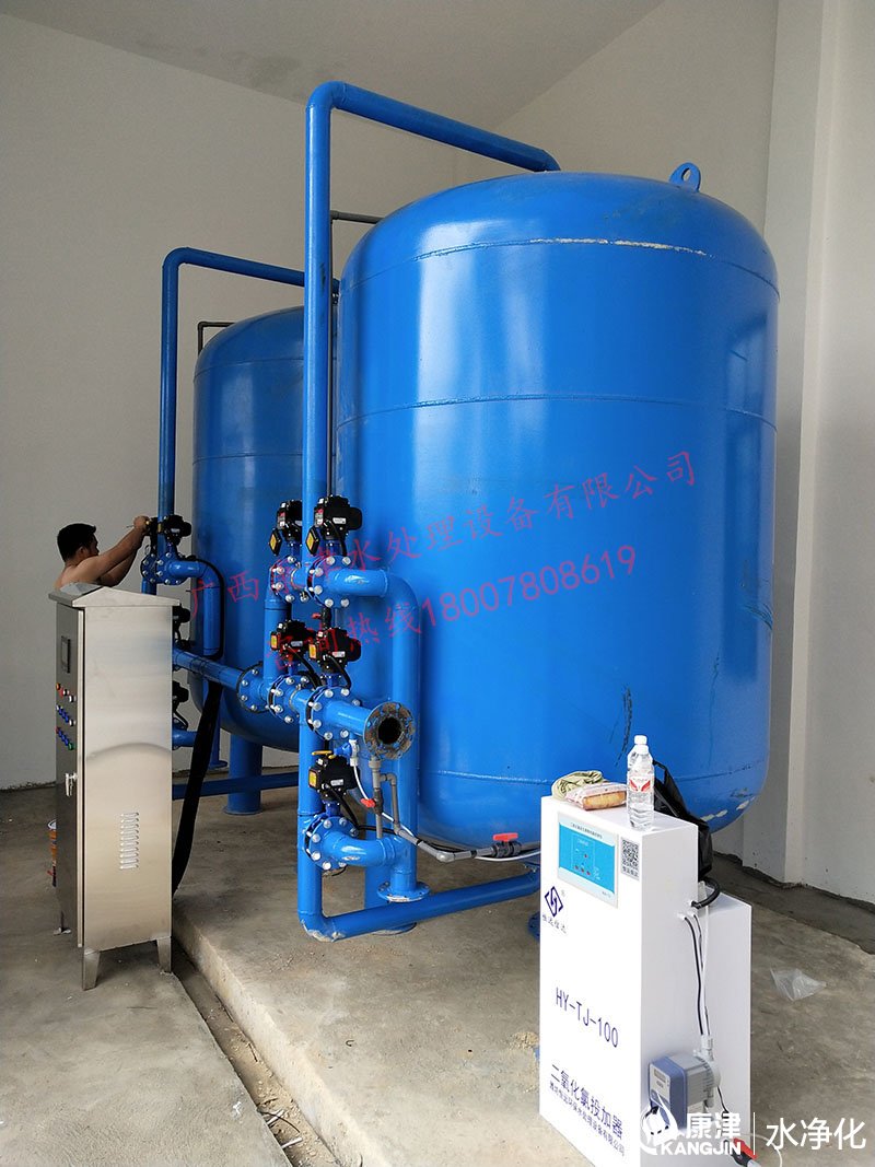 項目名稱:貴港六桂河水凈化工程 設(shè)備名稱:30噸壓力式凈水設(shè)備 工藝流程:河水-石英砂過濾器(二級過濾)-二氧化氯消毒...