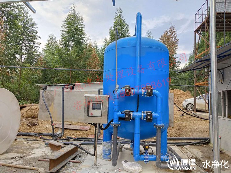 設(shè)備是壓力式的,其原理是當(dāng)原水自上而下通過濾料時(shí),水中懸浮物由于吸附和機(jī)械阻流作用被濾層表面截留下來;當(dāng)水流進(jìn)濾層中間時(shí),由于濾料層中的砂粒排列的更緊密,使水中微粒有更多的機(jī)會(huì)與砂粒碰撞,于是水中凝絮物、懸浮物和砂粒表面相互粘附,水中雜質(zhì)截留在濾料層中,從而得到澄清的水質(zhì)。經(jīng)過濾后的出水懸浮物可在3毫克/升以下。