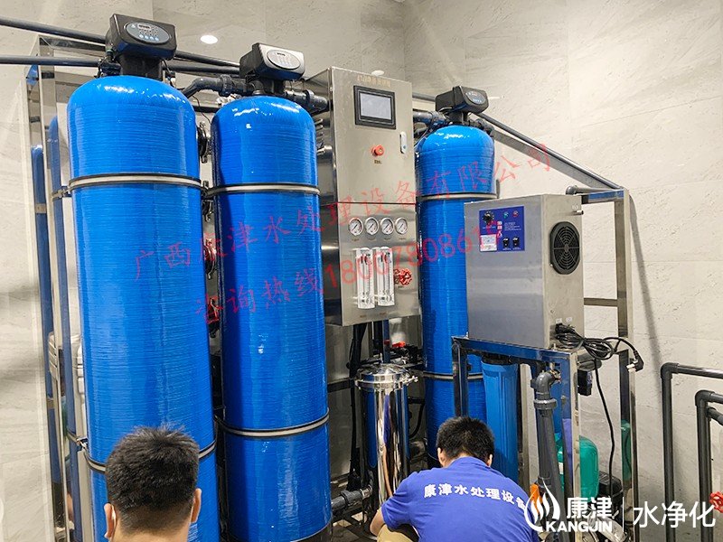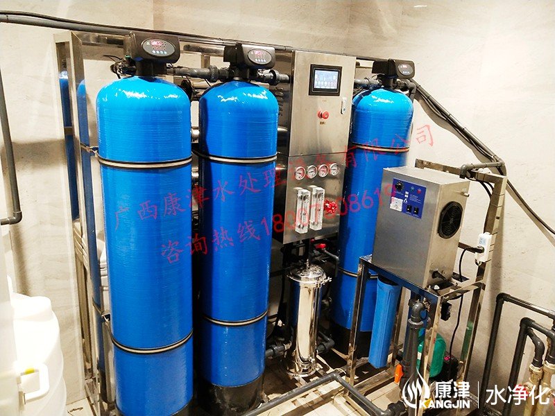 工藝流程:原水箱-原水泵-石英砂過濾器-活性炭過濾器-樹脂過濾器-精密過濾器-反滲透設備-軟水鹽-凈水箱-變頻供水回水殺菌系統(tǒng)-用水點