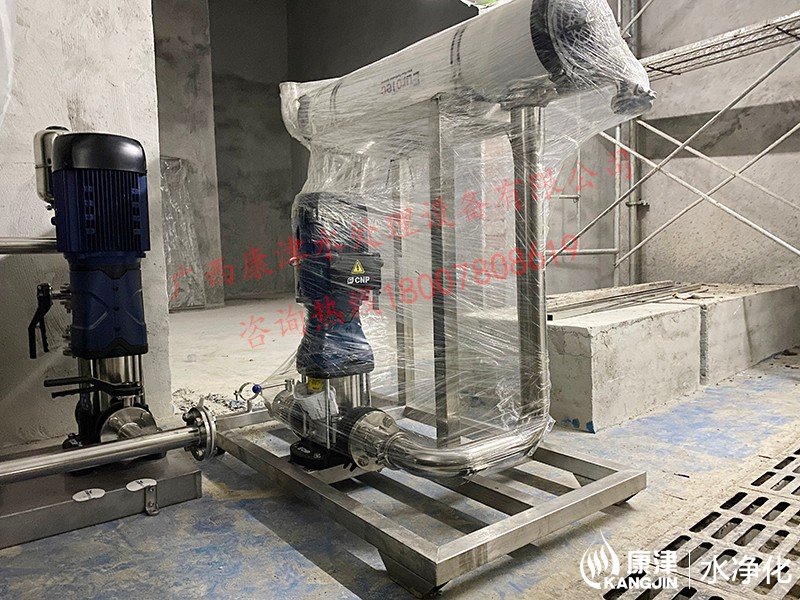 工藝流程:井水-原水箱-原水泵-石英砂過濾器-活性炭過濾器-阻垢裝置-保安過濾器-雙級(jí)反滲透設(shè)備-無菌水箱