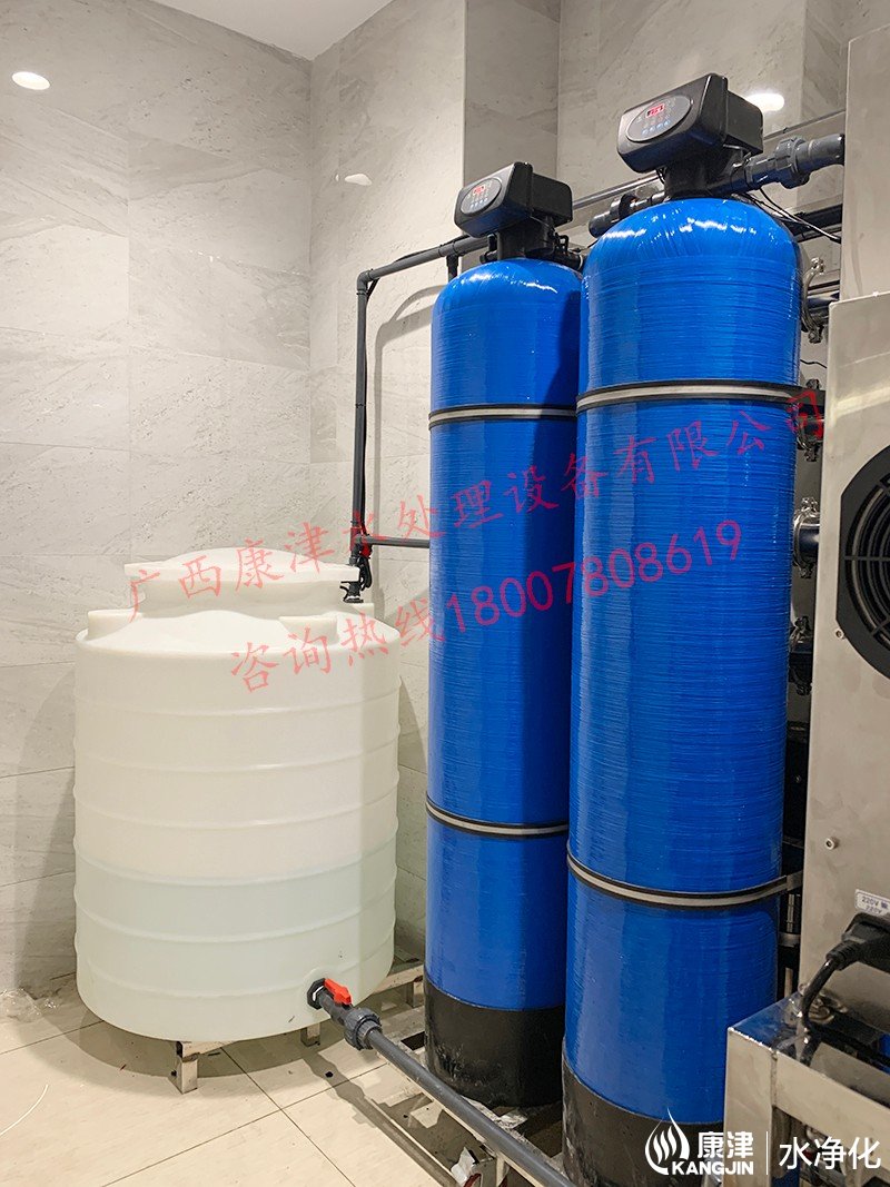 工藝流程:原水箱-原水泵-石英砂過(guò)濾器-活性炭過(guò)濾器-樹脂過(guò)濾器-精密過(guò)濾器-反滲透設(shè)備-軟水鹽-凈水箱-變頻供水回水殺菌系統(tǒng)-用水點(diǎn)