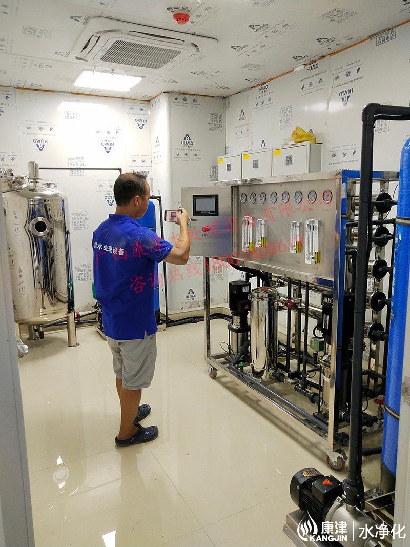 項目名稱:百色百東醫(yī)院0.5T雙級反滲透凈水設(shè)備 設(shè)備名稱:0.5噸雙級反滲透純化水設(shè)備 工藝流程:原水-原水泵-石英砂過濾器-活性炭過濾器-反滲透設(shè)備-精密過濾器-軟化水設(shè)備-凈水箱-變頻供水回水殺菌系統(tǒng)-用水點...