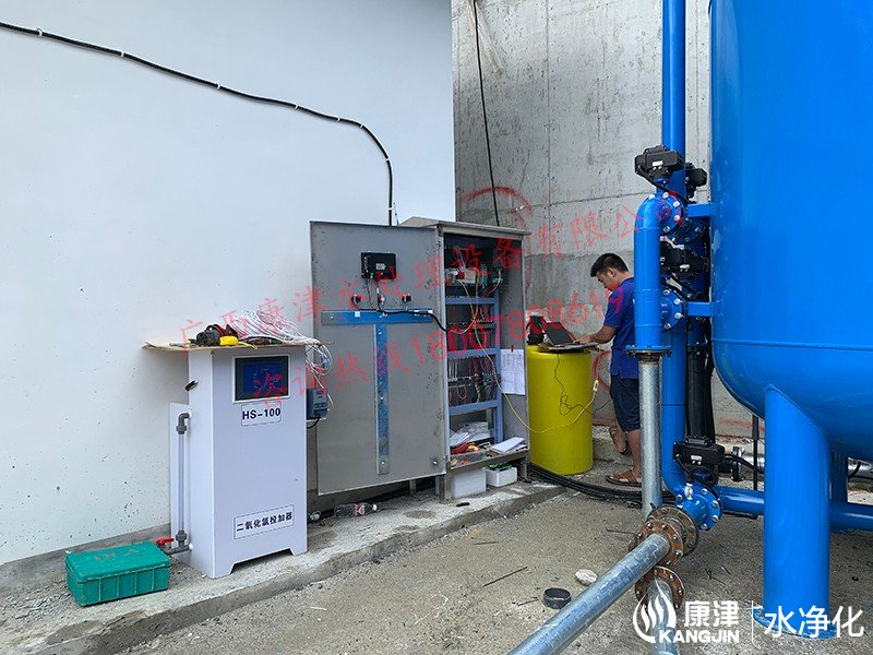 工藝流程:山泉水-絮凝投加器-石英砂過濾器-二氧化氯加藥器-用水點(diǎn)