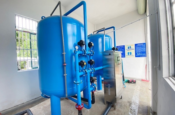 項(xiàng)目名稱:貴港石寨村地下水凈化工程 設(shè)備名稱:30噸壓力式凈水設(shè)備 工藝流程:河水-石英砂過濾器(二級過濾)-二氧化氯消毒...