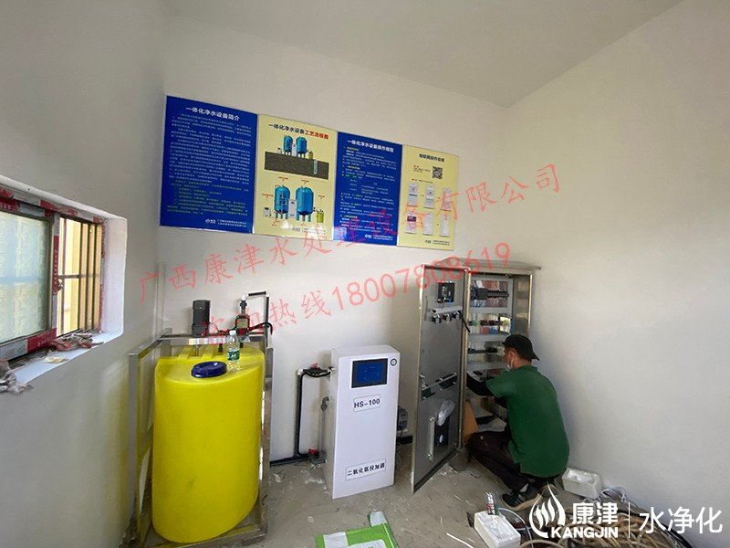 工藝流程:河水-絮凝加藥-沉淀過(guò)濾器-石英砂過(guò)濾器-二氧化氯消毒
