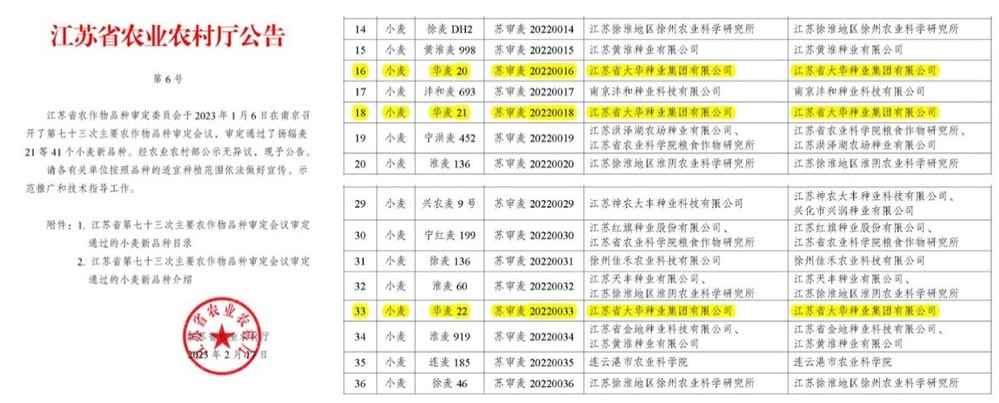 近日,江蘇省第七十三次主要農(nóng)作物品種審定會議審定通過41個小麥新品種,由蘇墾農(nóng)科院選育的華麥20、華麥21和華麥22三個小麥新品種順利通過審定定名。