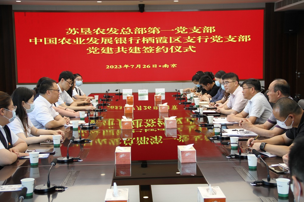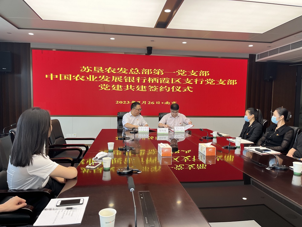活動(dòng)開(kāi)始,雙方支部共同開(kāi)展第一議題學(xué)習(xí),蘇墾農(nóng)發(fā)總部一支部書(shū)記劉剛領(lǐng)學(xué)了習(xí)近平總書(shū)記在江蘇考察期間發(fā)表的重要講話精神。農(nóng)發(fā)行棲霞支行黨支部書(shū)記丁全楠領(lǐng)學(xué)了習(xí)近平總書(shū)記在《求是》雜志上發(fā)表的《健全全面從嚴(yán)治黨體系,推動(dòng)新時(shí)代黨的建設(shè)、新的偉大工程向縱深發(fā)展》重要文章精神。蘇墾農(nóng)發(fā)財(cái)務(wù)總監(jiān)陶應(yīng)美介紹了公司與金融機(jī)構(gòu)業(yè)務(wù)開(kāi)展情況,對(duì)公司深化與農(nóng)發(fā)行在優(yōu)化省級(jí)儲(chǔ)備糧業(yè)務(wù)、拓展農(nóng)業(yè)政策性金融服務(wù)等方面合作提出建議。隨后,雙方支部緊扣“以學(xué)促干”開(kāi)展了座談交流,就加強(qiáng)黨建工作及銀企業(yè)務(wù)合作作了深入探討等。雙方一致表示,蘇墾農(nóng)發(fā)與農(nóng)發(fā)行棲霞支行肩負(fù)保障國(guó)家糧食安全、落實(shí)“藏糧于地、藏糧于技”等國(guó)家重大戰(zhàn)略上有著共同使命責(zé)任,希望通過(guò)開(kāi)展黨建共建,進(jìn)一步推動(dòng)黨建與業(yè)務(wù)融合,深化銀企合作。會(huì)上,雙方黨支部還簽訂了《黨建共建協(xié)議書(shū)》。