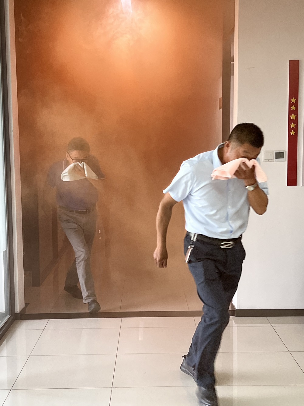 本次培訓主要含消防安全理論培訓和應(yīng)急處置演練兩部分。理論培訓分防火知識培訓、滅火器原理培訓、夏季防暑培訓等,消防專家從消防法相關(guān)規(guī)定、消防常識、消防設(shè)施使用、火災(zāi)撲救與疏散逃生等多個方面詳細講解了火災(zāi)起因、如何有效撲救火情以及疏散逃生等消防安全常識。應(yīng)急處置演練內(nèi)容有火災(zāi)現(xiàn)場逃生、滅火器使用等,消防專家組織職工開展火災(zāi)實景疏散逃生演練,現(xiàn)場學習滅火器使用方法,并進行了滅火器材操作比賽,確保每位職工都能熟悉掌握滅火步驟及器械使用方法,提升滅火技能。