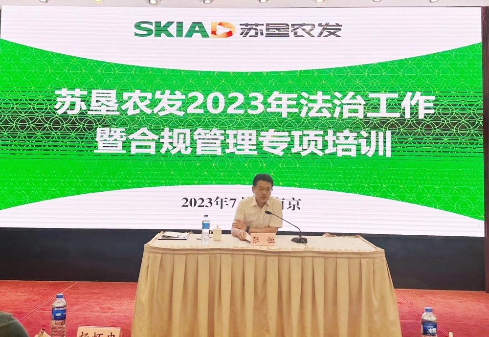 為進一步深化推進公司法治建設,提升公司總部及下屬各單位法治及合規管理水平,7月27日至28日,蘇墾農發在南京舉辦法治工作暨合規管理專項培訓,公司黨委委員、副總裁、董事會秘書張恒出席會議并講話。