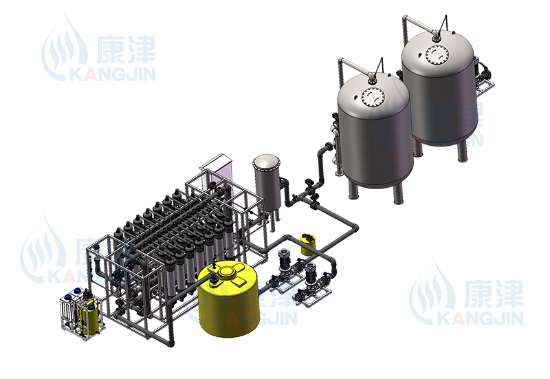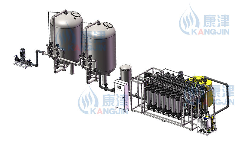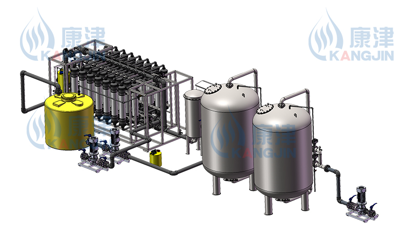 本方案主要針對(duì)原水為河水,以河水為飲用水源的地區(qū),常常在雨季會(huì)遇到水質(zhì)渾濁發(fā)黃問(wèn)題。河水通常比較渾濁,水面漂浮臟東西、樹(shù)葉、水藻等,尤其在暴雨季節(jié),水中泥沙量增加,雜質(zhì)多,濁度、色度、氣味、細(xì)菌含量超標(biāo),因此必須使用專(zhuān)業(yè)凈水設(shè)備處理后才能達(dá)到生活飲用的目的。我們對(duì)河水的凈化主要是除去水中雜質(zhì),包括以下幾種:泥沙、大分子顆粒雜質(zhì)、懸浮物、藻類(lèi)、膠體,去除污染色度、異味、微生物、細(xì)菌、病毒等,有的源水會(huì)含有HCO、Ca 、SO 、Cl 、Na 、Mg 和K。為了將河水指標(biāo)達(dá)到生活用水標(biāo)準(zhǔn),通過(guò)康津超濾設(shè)備進(jìn)而得到凈化。康津水處理為根據(jù)實(shí)際用途情況制定以下解決方案。用水人數(shù)大約在1000人,用水處理量每小時(shí)約40噸。