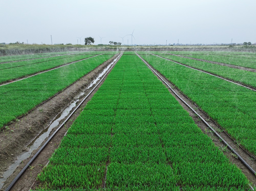 端午時(shí)節(jié),蘇墾農(nóng)發(fā)東辛分公司托管基地的水稻秧田生機(jī)勃勃。今年,托管基地1.2萬(wàn)畝水稻全部推廣微噴灌育秧技術(shù),實(shí)現(xiàn)技術(shù)全覆蓋,標(biāo)志著傳統(tǒng)水稻育秧向節(jié)水高效模式的跨越。
